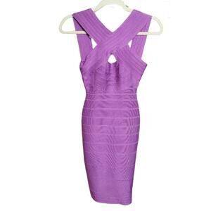 Herve Leger Criss Cross Bodycon Bandage Dress Purple $1050 XS.