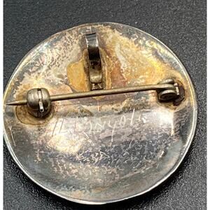 These brooches are typically made of sterling silver and feature colorful inlays of turquoise, coral, shell, and jet.