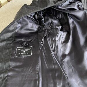 Hickey Freeman Mens Gray Pinstripe Lined Suit Jacket Coat Blazer Size 38R 100% Wool
