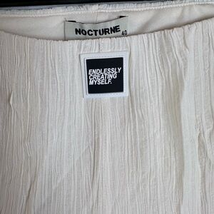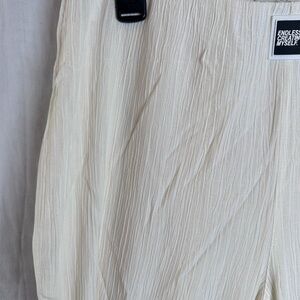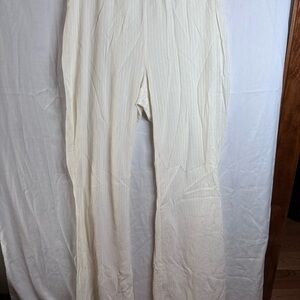 High-waisted flare pants with elastic waistband.