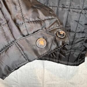 Hippy Tree Jacket Mens Large Black Full Zip Quilted Hunter Series with Stow Away Hood. Snap closures at wrists. Pit grommets for venting.