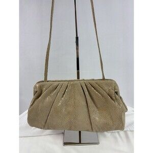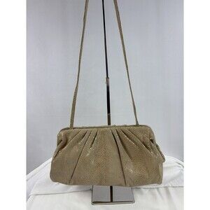 Hobo International Pillow Frame Clutch Tan Leather Snake Reptile Shoulder Strap