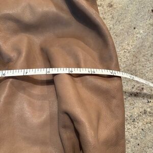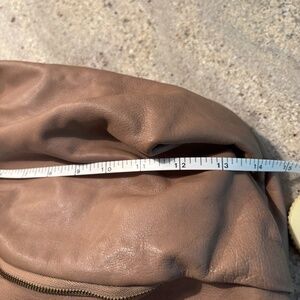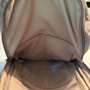 Good condition Hobo backpack. I would call it camel color or very light brown. It is in great condition except for small pen mark on back (in photos) and missing a loop for the straps on one side. I have only used this a couple times. Hobo makes great bags. I just don't use this one. I have many others I use all the time.