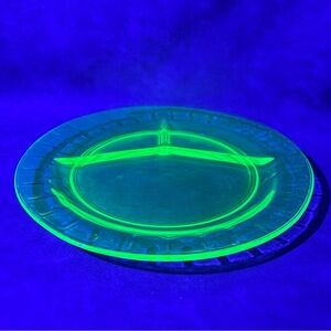 Hocking Green Cameo 10 1/2" Dinner Plate One Uranium Glass Glowing
