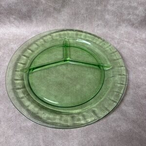 Hocking Green Cameo 10 1/2"  Dinner Plate One Uranium Glass Glowing in good condition