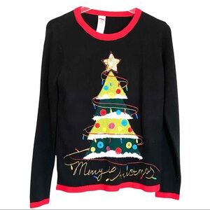 Holiday Time Black Christmas Sweater Christmas Tree Design Size S/CH (4-6)
