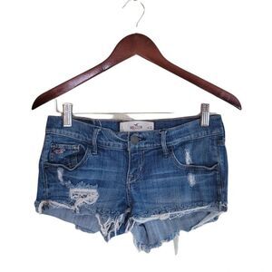 HOLLISTER SHORT BOOTY SHORTS RAW HEM/DISTRESSED DENIM SHORTS 3 BLUE