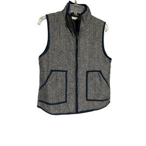 Honey Punch Womens Full Zip Linen Blend Herringbone Contrast Vest Pockets Size M