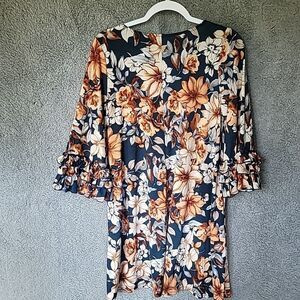 Honeyme Oversized Womens Dress Midi Pockets Floral Size Small Ruffle Sleeves NWT