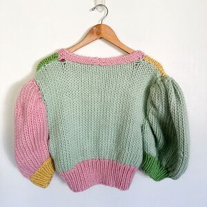 Hope Macaulay Free People Sparkle Puff Sleeve Color Block Pastel Chunky Knit Car