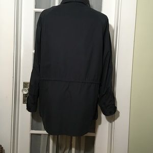 Authentic Vintage Burberrys Prorsum Dark Navy Blue Hooded Jacket/coat/trench/field. Rare find. Purchased in London prior to 1999 when it was Burberrys. Features 4 front tab button pockets, bottom are pouch with side pocket behind, button wind flap over zippered front, hide away hood, front snap collar, cinched drawstring waist, 2 button cuff on sleeve. Light weight 100% cotton. Gently used in good condition.