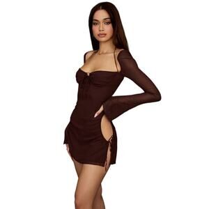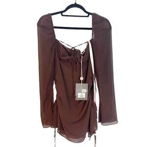 House of CB Cutout Chiffon Mini Dress Chocolate Brown Size Small NWT