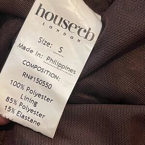 House of CB SB7886A Baby Brown Chocolate Chiffon Cutout Halter Mini Dress Size S. Our most awaited dress 'Baby' is our super fun, feminine creation. Cut from our lightweight georgette fabric in a chocolate brown hue, 'Baby' has gathered underwired cups for full support and amazing cleavage with halter neck ties for the perfect fit. We especially love the skin baring cutouts at the hips with drawstring ties to accentuate the fit and add a dash of daring. The close fit through the body gently flares out at the mini hem and extended cuffs that graze the knuckles. It is fully lined in a soft mesh for comfort. Stylish dinner dates, party nights, champagne bars, cocktails with the girls.