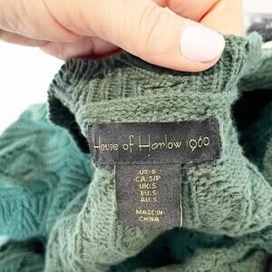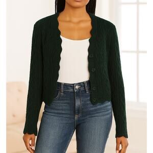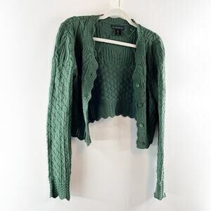 House of Harlow Long Sleeve Cropped Scalloped Cardigan Sweater Green Small