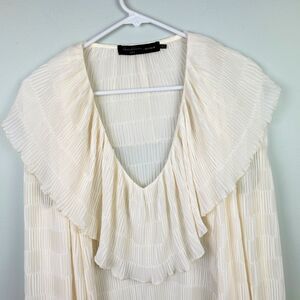 House of Harlow Revolve Piper Blouse Ivory Long Sleeve Sheer Ruffle Pleat Top L