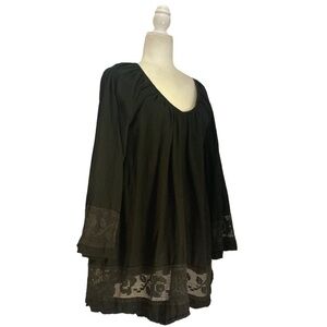 Perfect oversized look and semi sheer floral detailing at the sleeve and hem. This blouse is the perfect top or beach coverup dress to be dressed up or down, tucked in or out. This is the easiest top to style with just about everything in your closet. So Versatile!