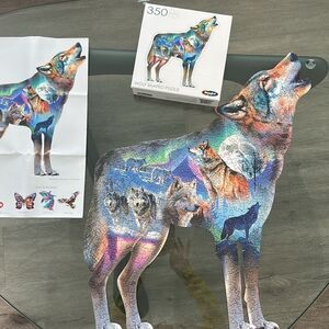 Wolf 🐺 shaped puzzle 🧩 complete! In box! 20.8” x 25” poster. Rose 🌹 Art 🖼️ since 1923.