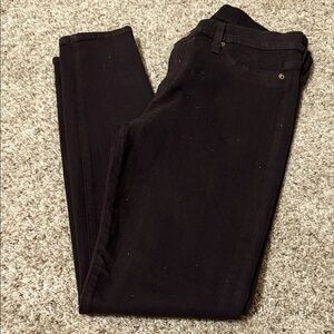 Sleek dark brown skinny jeans by Hudson Jeans. Embellished with gold glitter. Perfect for versatile styling.