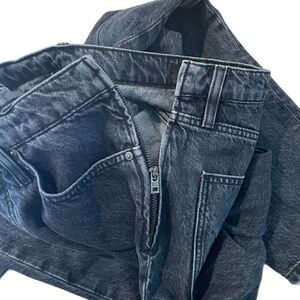 Faded black denim. Side zipper. One back pocket. High rise ankle/cropped.