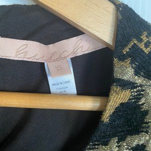 Hutch blouse top sz XS cheetah print textured keyhole tie back black gold