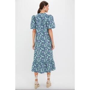Hyacinth House Multi Blue Leafy Floral Mimi Midi Dress Sz M