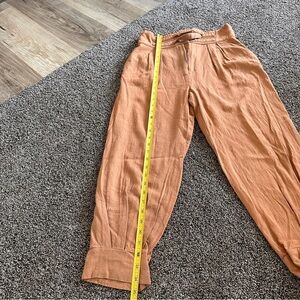 ILLA ILLA Orange /Tan High Waist Linen Blend Paperbag Pants Women’s M Boho Chic