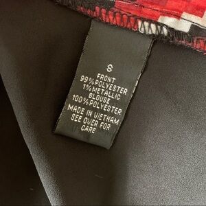 I.N STUDIO Red Black Chevron Print Lace Blouse S