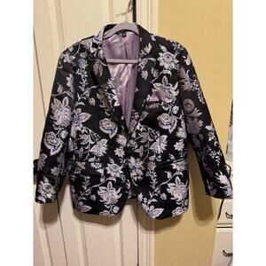 INC International Concepts Black Purple Silver Floral Party Suit Coat Blazer XL