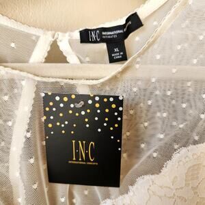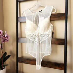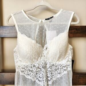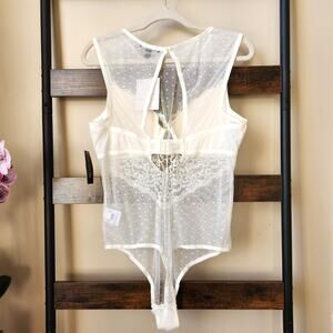 INC International Concepts Women White Cupped Swiss Dot Thong Bodysuit Size XL