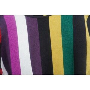 Elevate your wardrobe with this vibrant and stylish INC International Concepts sweater. This eye-catching crewneck pullover features a bold, multi-color vertical striped pattern with metallic threading that adds a touch of subtle sparkle and glamour. The comfortable knit material makes it a perfect choice for all seasons, easily transitioning from a casual day out to a more business-casual setting. The long-sleeve design and classic silhouette make it a versatile and timeless piece that pairs effortlessly with jeans, leggings, or a skirt.