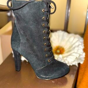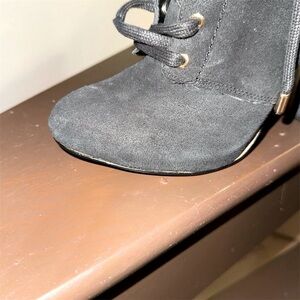 INC Women's Black Lace-Up Suede Boots Size 5.5M Casual Chunky Heel