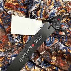 INTRO Brown Blue Gold Rust Paisley Cowl Neck Tunic Hi Lo Long Sleeve Top NWT M