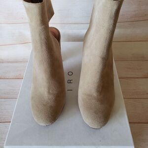IRO Matyizi Suede Cutout Round Toe Bootie Block Heel Tan Natural Women's Size 39