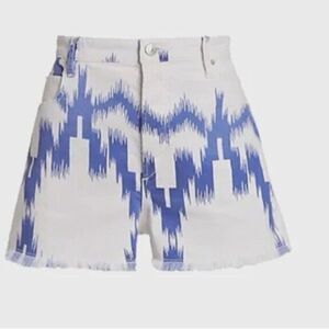New condition. New condition New condition. Denim shorts dyed with a geometric print fabricated of stretch denim.
