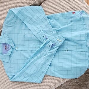 Elevate your wardrobe with the IZOD Men's Light Blue Checkered Shirt. Perfect for both casual and formal occasions, this shirt offers a stylish and comfortable fit. Size small.