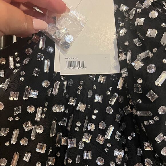 Ieena for Mac Duggal NWT One Sleeve Embellished Dress black silver size …