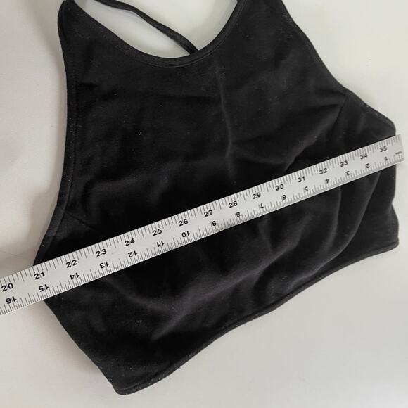In God We Trust Crop Top Womens X Small Black Halter Open Back Stretch