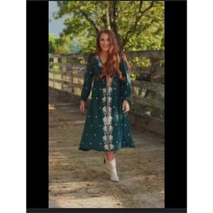In Loom Bohemian Boho Embroidered allover speckled floral maxi dress M elastic ruffled sleeve drawstring waist no stains or rips fully lined