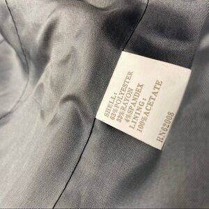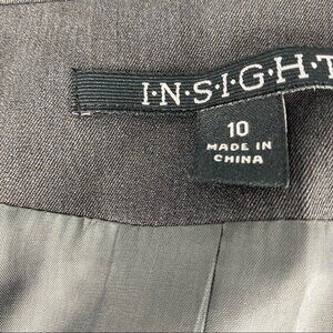 Insight New York gray size 10 blazer, it has a five-button closure, mandarin collar, long sleeves, minimalist design, two pockets, lined and shoulder padding. Materials shell 63% polyester, 33% rayon, 4% spandex, lining 100% acetate. RN 63008 Style PRJ8908. Care dry clean only. MFSR:$150.00 Condition is preloved very good as shown in pictures. Please preview the measurements to ensure fit.
