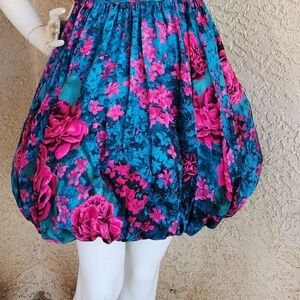 Inspire 1980s Tracy Reese Floral Silk Bubble Hem Party Dress,