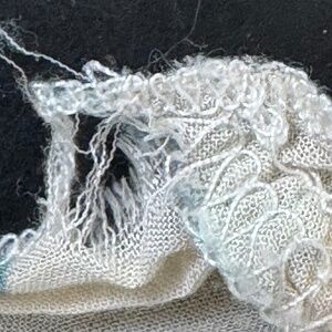 This measures 20" laid flat at underarms, waist area is 19" and length at asymmetrical hemline ranges from 52"-57". In very good pre-owned condition. Normal wear and tear noted, note that there is a small tear at one of the hemline points, shown in last photo and enlarged for detail. Please review pictures and feel free to ask any questions or for more pictures prior to purchasing.