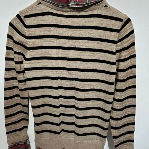 Intro Women's Multicolor Stripe Plaid Collared Layered Pullover Sweater Small NWT