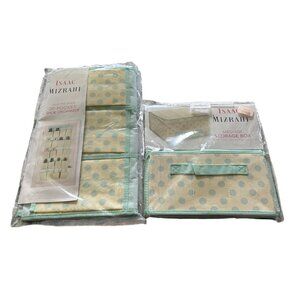 Isaac Mizzrahi Shoe Organizer & Medium Storage Box Beige w/ Green Polka Dots NEW