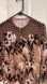 Elevate your wardrobe with this floral cardigan. Featuring a beautiful tan base with intricate black and pink floral patterns, this top is perfect for any occasion.