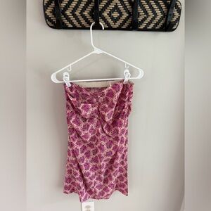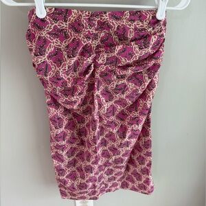 Gorgeous purple/pink toned fuchsia print silk blend Isabel Marant midi skirt! Ruching details across the waist and side zipper. Perfect light and airy skirt for summer or vacation.