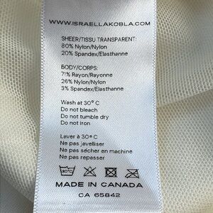 Preowned and has some discoloration around the neckline. The mesh came unrolled at the neckline and has been stitched back in place.