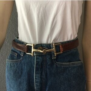 Italian Embossed croco brown, gold belt this is adjustable beautiful basic unique gold hook