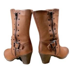 Distressed Mid-calf Buckle Chunky Heel Women's Vegan