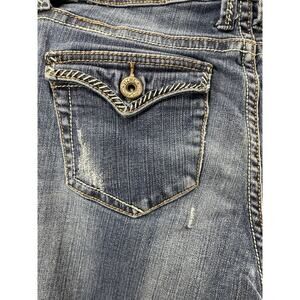 Itzme Premium Women’s Jeans Size 11 Stretch Blue Distressed Flap Pocket Straight