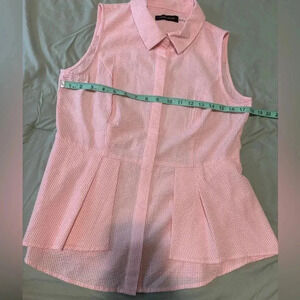 Ivanka Trump Top Womens Medium Sleeveless Hidden Button Down Pink Seersucker